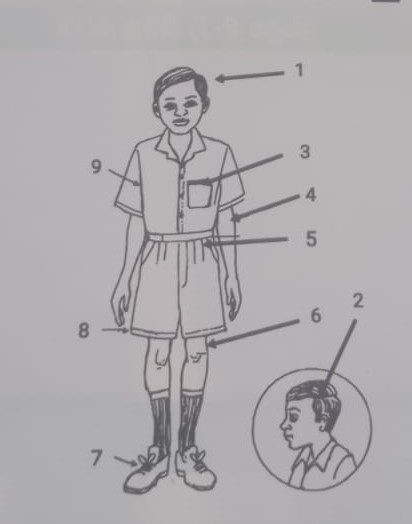 - කොණ්ඩයේ අග කෙළවර හොදින් නවා එක සමානව තබා කළු රිබන් ආධාරයෙන් මනාව ගැට ගසා තිබිය යුතුය.(කොණ්ඩය කොටට කපන්නේ නම් එය දෙකණ මනාව පෙනෙන සේ නොබැදිය හැකි ලෙස කපා තිබිය යුතු අතර හිස මැදින් පෙනෙන සේ දෙකට බෙදා පීරිය යුතුය.